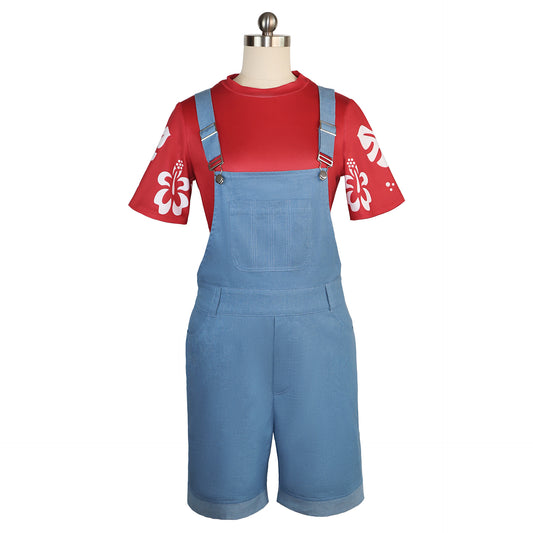 Girls Lilo Pelekai Costume Leaf Print T-Shirt and Overall Shorts Outfit Set