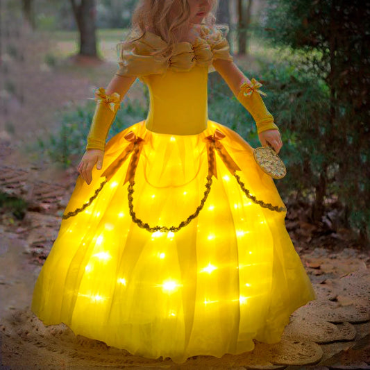 Belle Costume Girl Princess Dress Light Up Dress Glowing Party Dress Birthday Dress