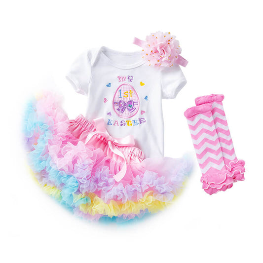 4-teiliges Osterhasen-Set für Babys mit Flügelärmeln, Tutu-Rock, Socken und Stirnband