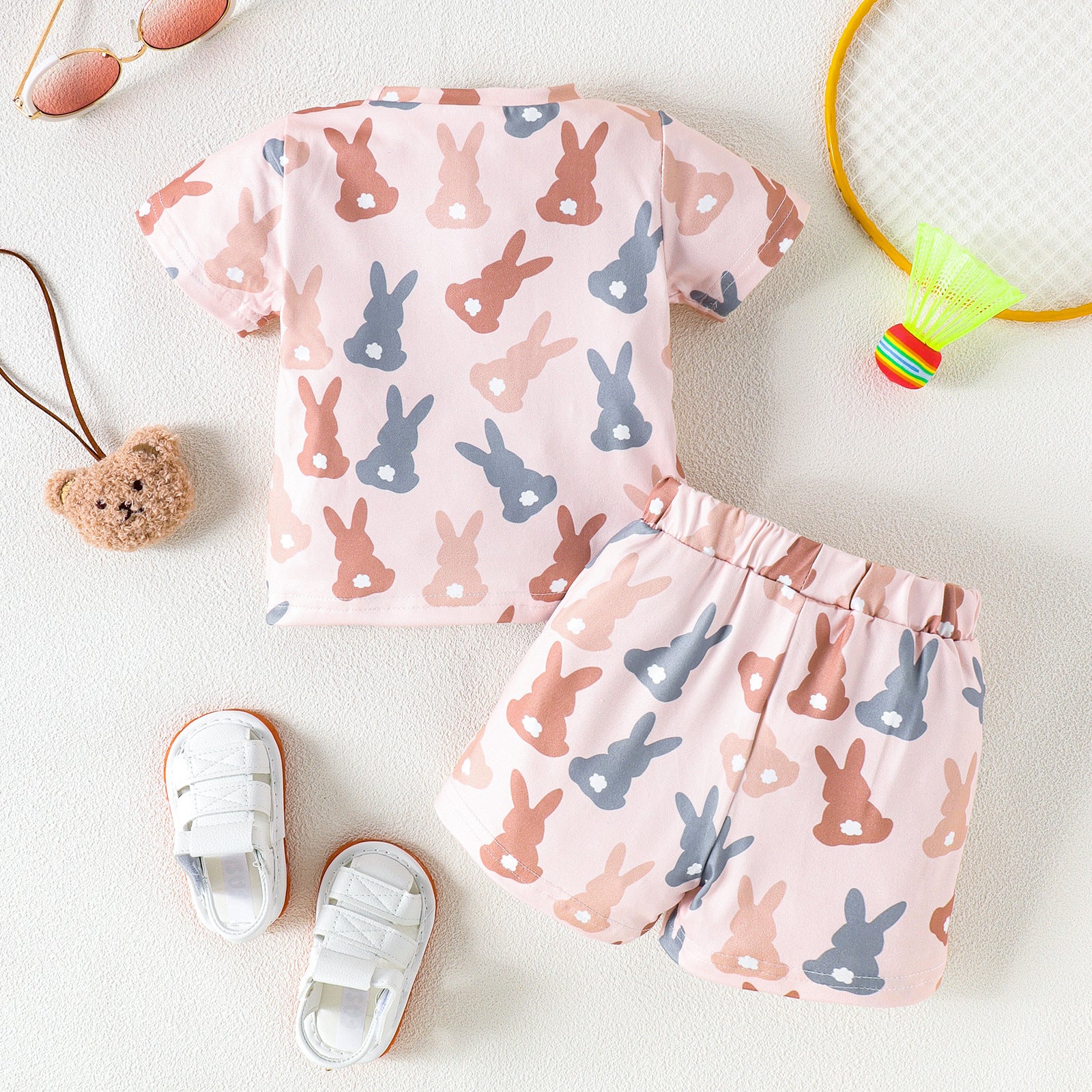 Bezauberndes zweiteiliges Osterhasen-Set für Mädchen – süßes Kurzarmoberteil und Shorts für Sommerspaß.