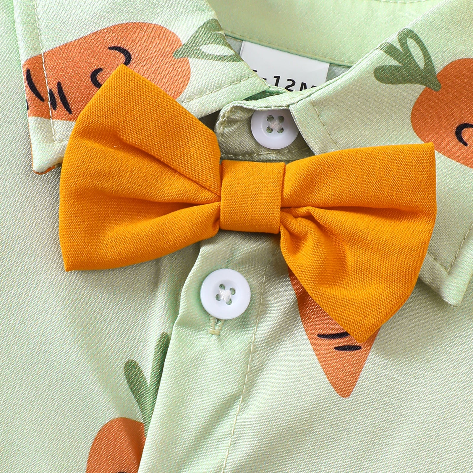 Baby-Jungen-Outfit mit Oster-Karotten-Print und Hemd und Shorts