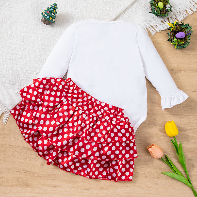 Oster-Outfit für Babys Mädchen – Langarm-Strampler mit Cartoon-Häschen und gepunktetem Rock, 2-teiliges Set