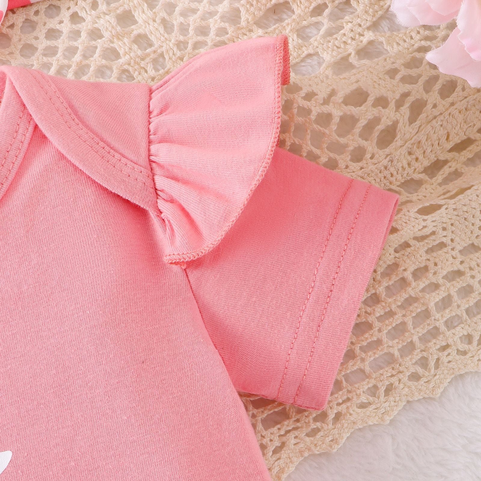 Baby-Set für Mädchen mit rosa Osterhasen-Print – Süßer Kurzarm-Strampler mit Schleife und Tüllrock