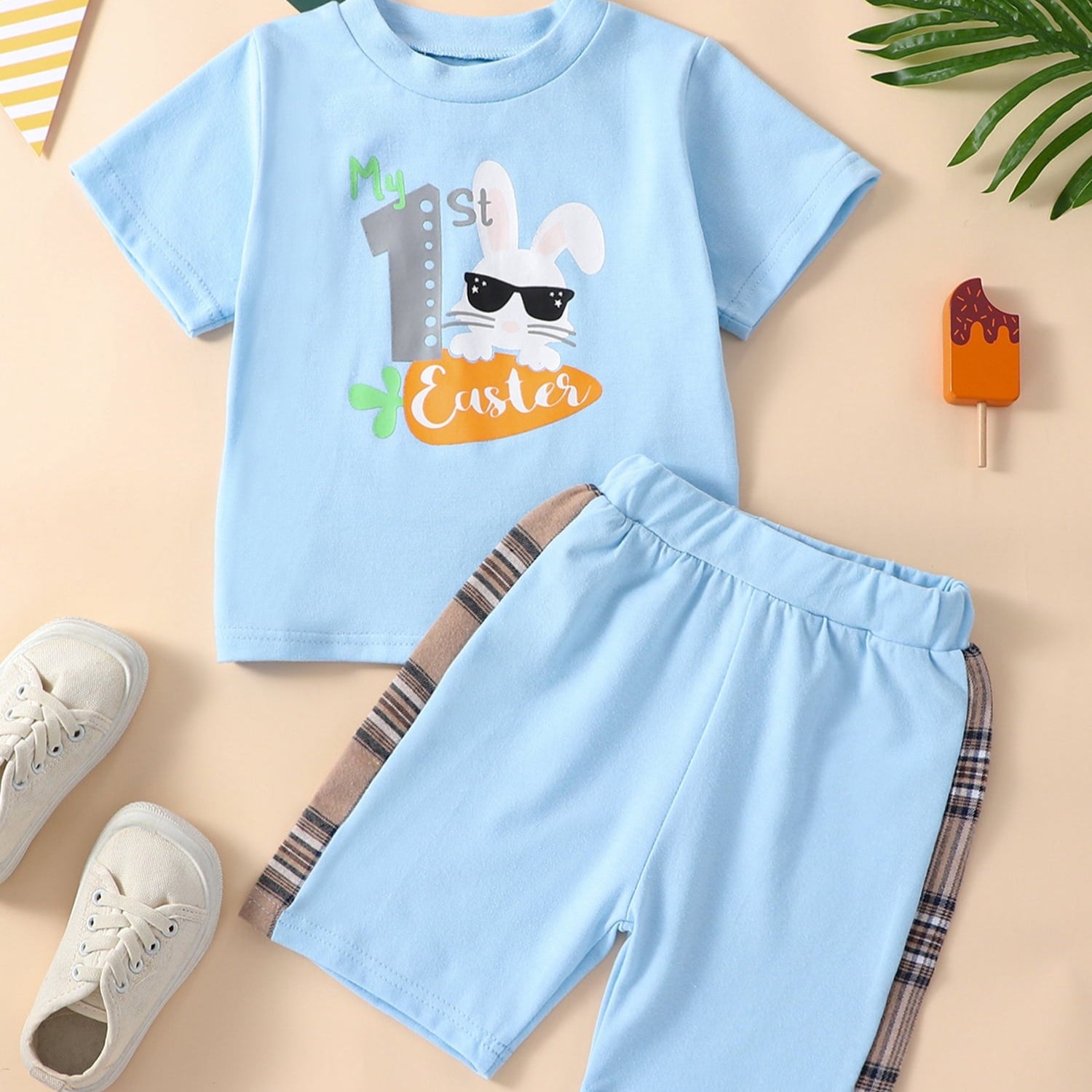 Osterkleidung für Babys Jungen – 2-teiliges T-Shirt- und Shorts-Set mit Hasen-Print (12M-4T)
