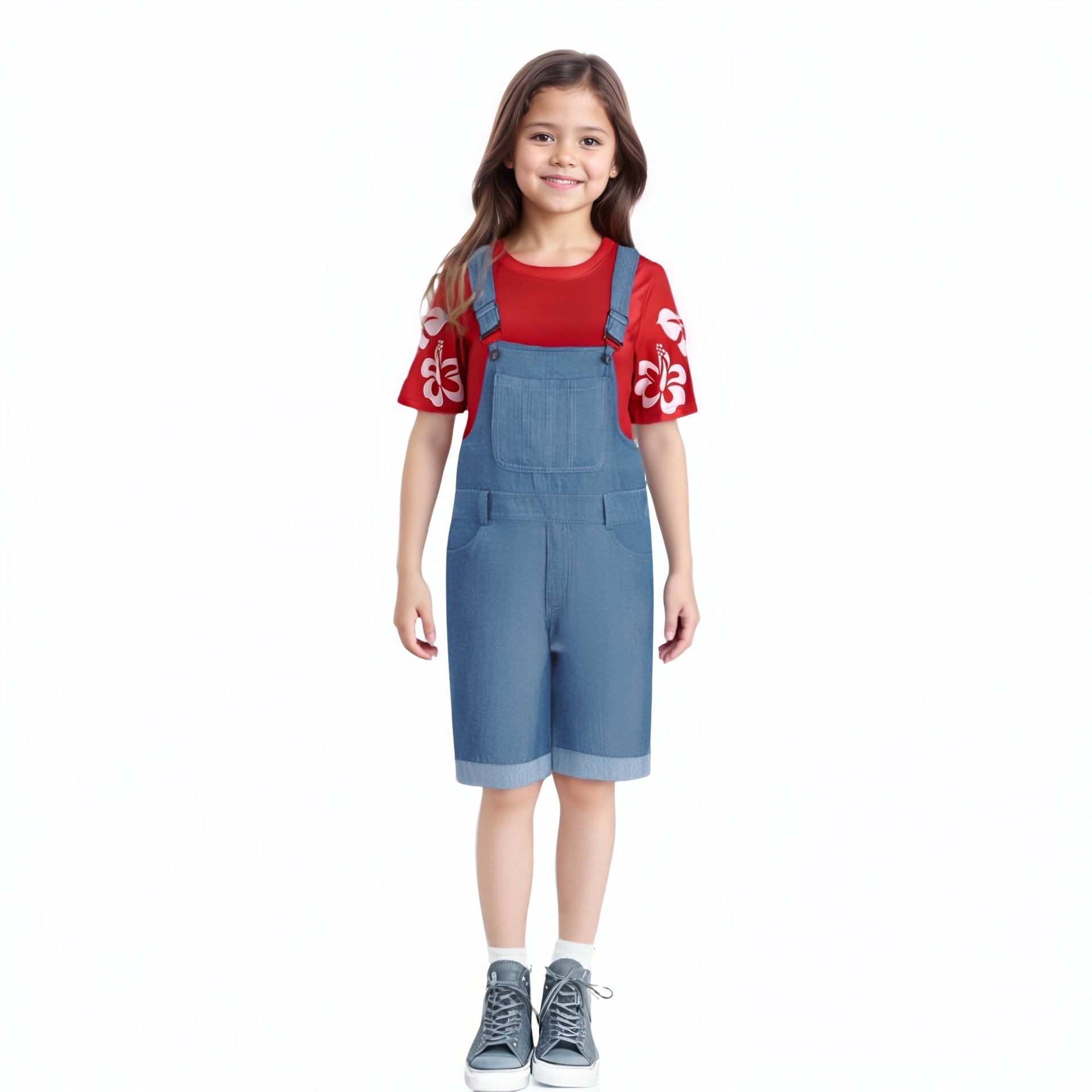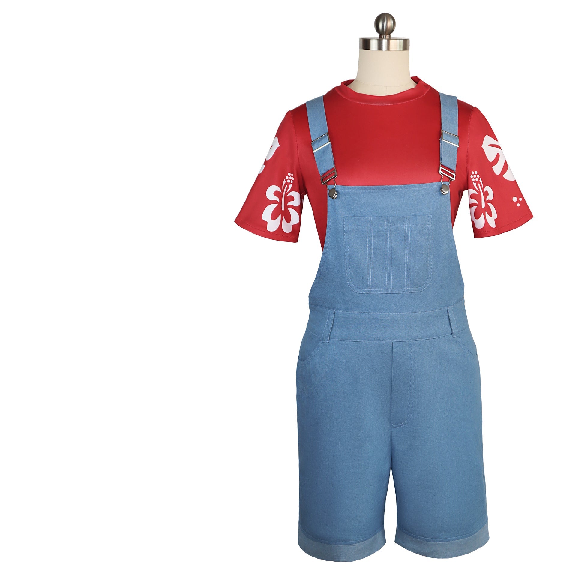 Girls Lilo Pelekai Costume Leaf Print T-Shirt and Overall Shorts Outfit Set